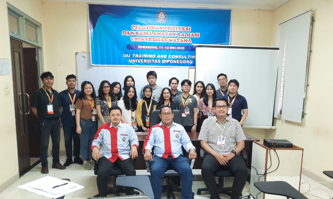 UU Training and Consulting Undip mengadakan Pelatihan Proteksi dan Keselamatan Radiasi pada hari Kamis dan Jumat tanggal 11 – 12 Mei 2023 bertempat di Gedung Training Centre. Pelatihan diikuti oleh 18 mahasiswa yang berasal dari Universitas Matana, Tangerang.